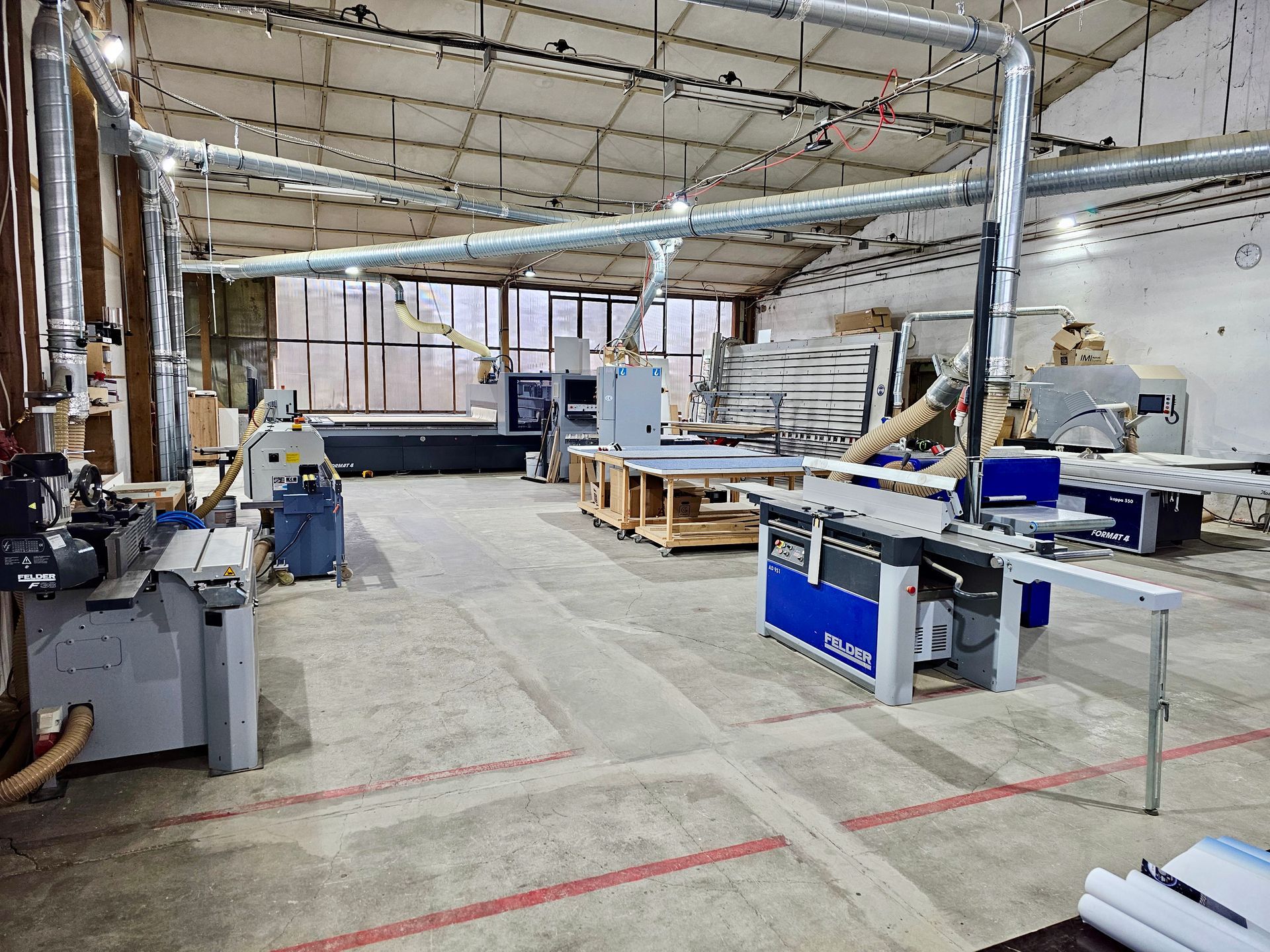 In unserer Schreinerei werden alle unsere Möbel selbst gefertigt. Vom Entwurf, über die Fertigungszeichnung mit Digitaler Übergabe an unser Bearbeitungszentrum bis zur Oberflächenveredelung machen wir alles selbst.